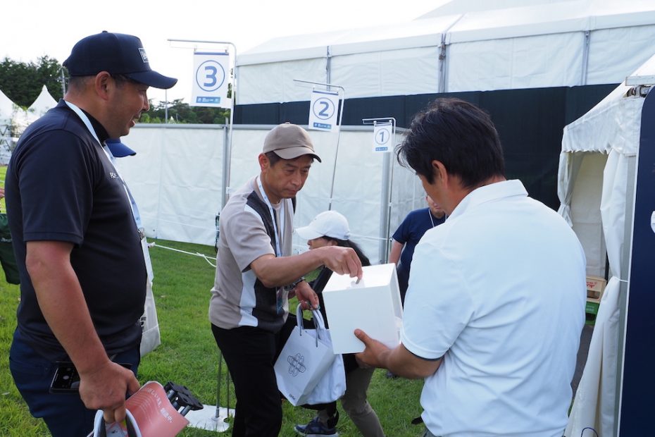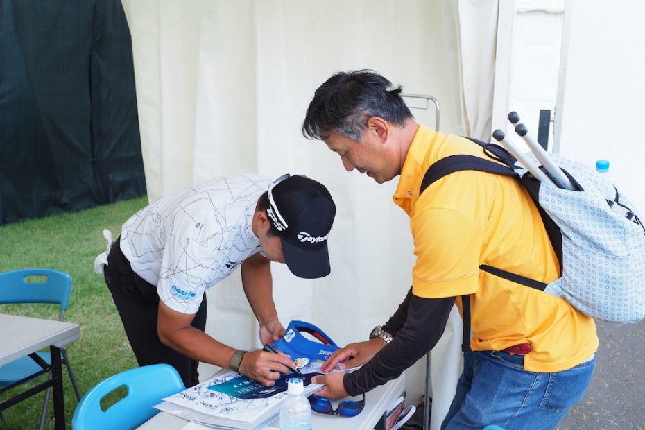 選手のホールアウト後に一緒に写真がとれる『チャリティフォト』は、1組1枚1000円以上のチャリティで選手1人につき10名様まで受け付け。希望が10名様を超えた場合は抽選となります。ご希望の方は、各日10時までに、ギャラリープラザのインフォメーションで受付をお済ませください。