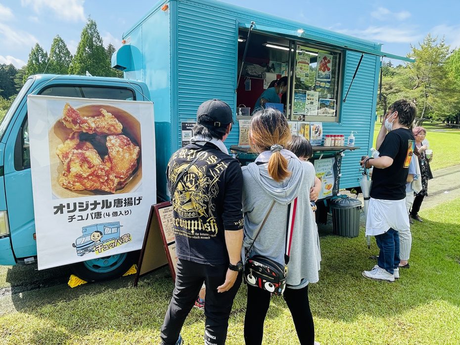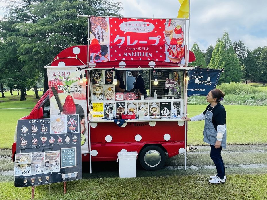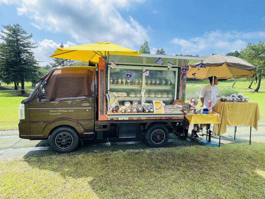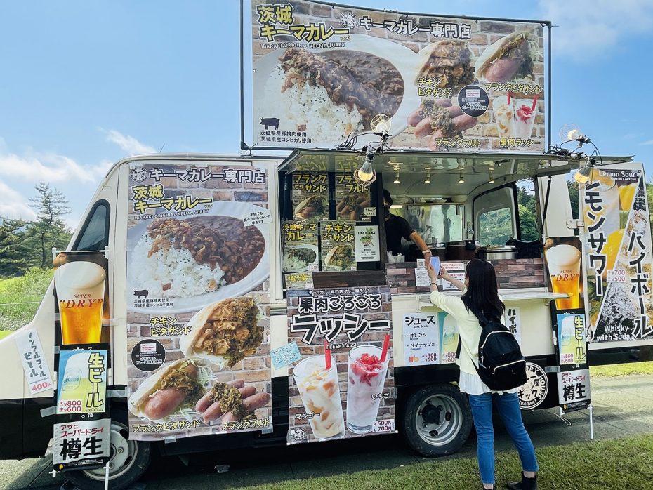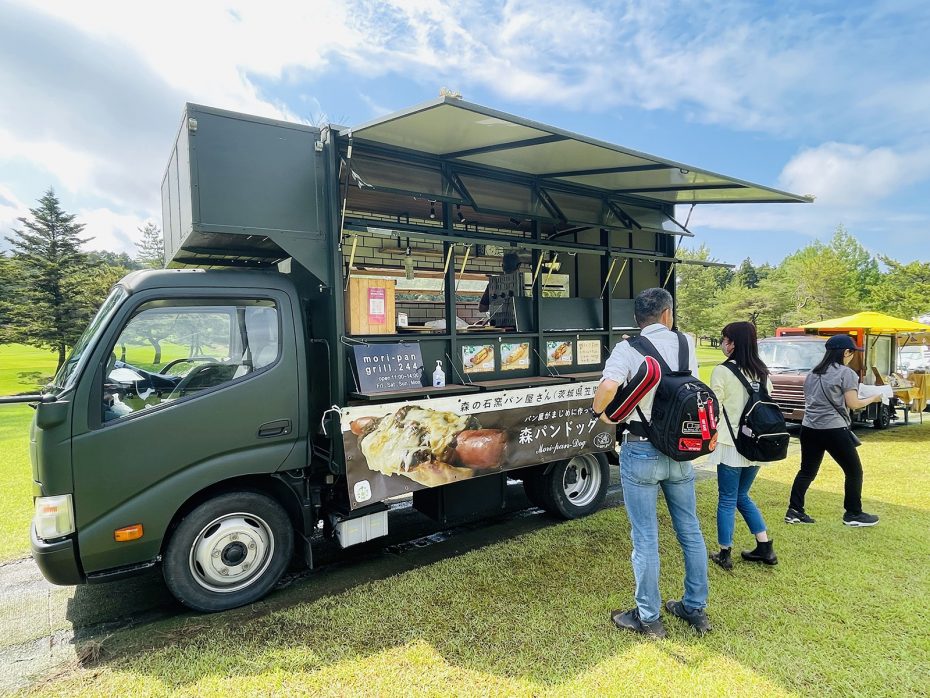 宍戸ヒルズカントリークラブで20回連続開催となる「BMW日本ゴルフツアー選手権森ビルカップ」。6月3日(土)には、地元の皆様への感謝の気持ちを込めて「かさまスポーツ&フードフェス」を開催しております。台風2号の影響でお天気が心配されましたが、イベントの開始に合わせて会場は青空が広がり出しました! 11時頃に営業を開始したのは、フードエリアにある12店舗のキッチンカー。お昼時には多くのギャラリーが集まり、人気店には長蛇の列ができていました。全12店舗を紹介します。