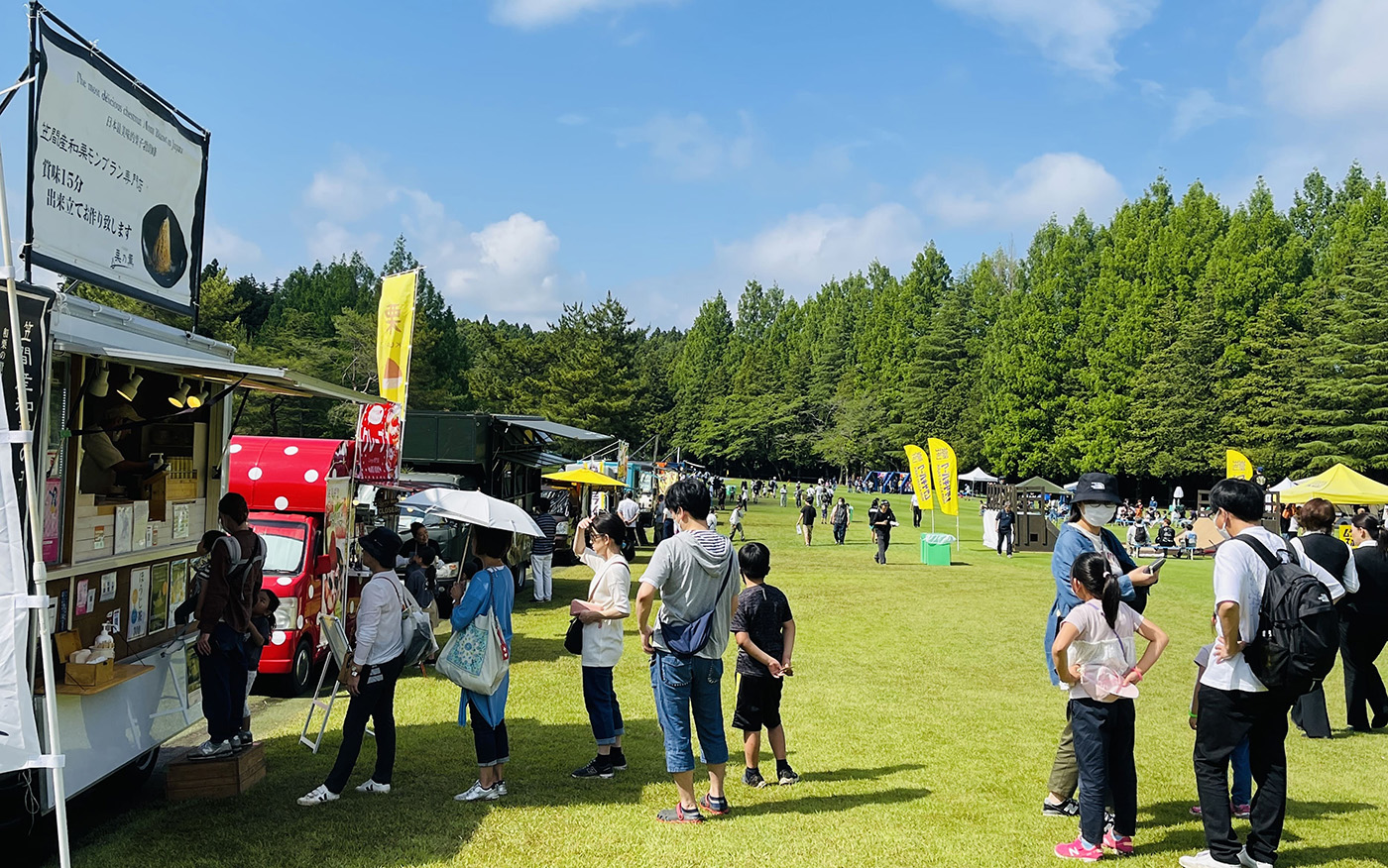 晴天の中、かさまスポーツ&フードフェスがスタート!お昼時のフードエリアは大賑わい