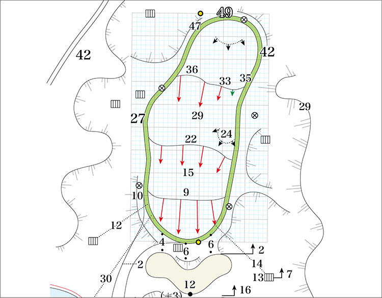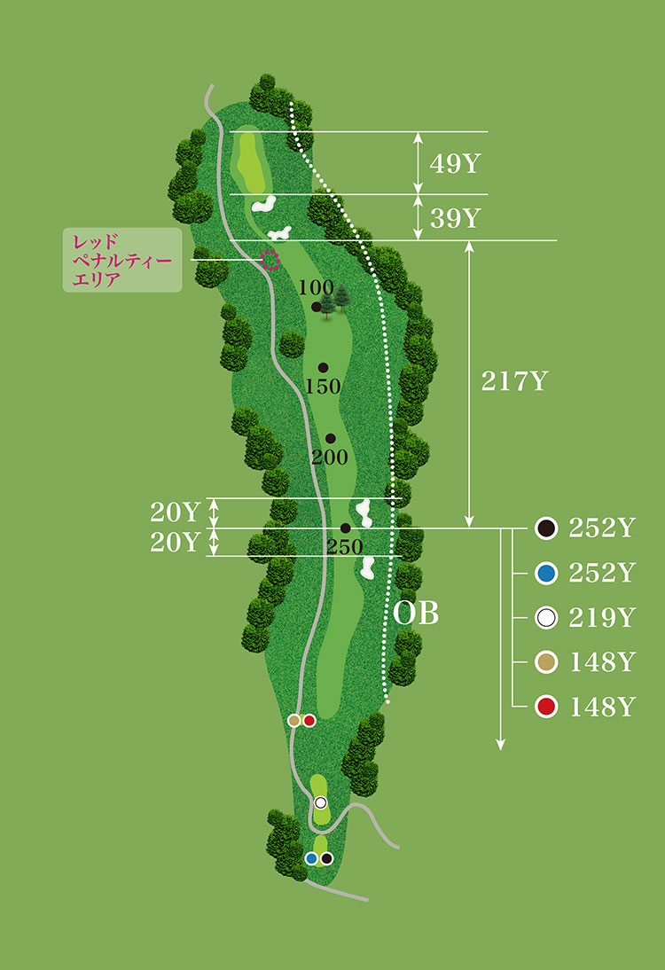 519ヤードと短いロングホール。2015年は難易度4番目のホール、優勝争いの時にはバーディは必需です。左カート道路上を狙い、FWキープが重要。ティーショットがFWなら、打ち上げの距離をしっかり計算し2オンを狙うホール。ラフならしっかりとバンカー手前に刻みたい。
