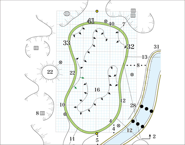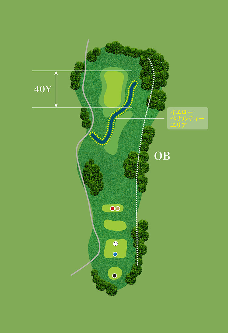 グリーン手前から右にクリークが流れる。2004年にはS・K・ホ選手がホールインワンを達成。グリーン左サイドにコブがあるため、左サイドが安全だが左に外すと大変難しいアプローチが残る。後ろから右サイドにかけて木々に囲まれており、風の計算が難しい。